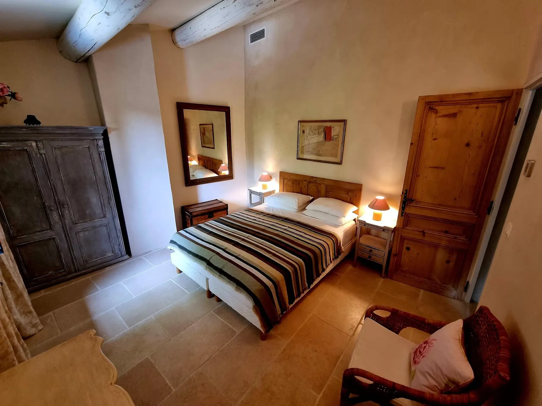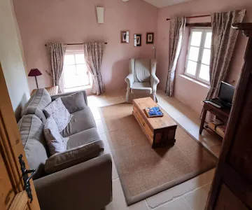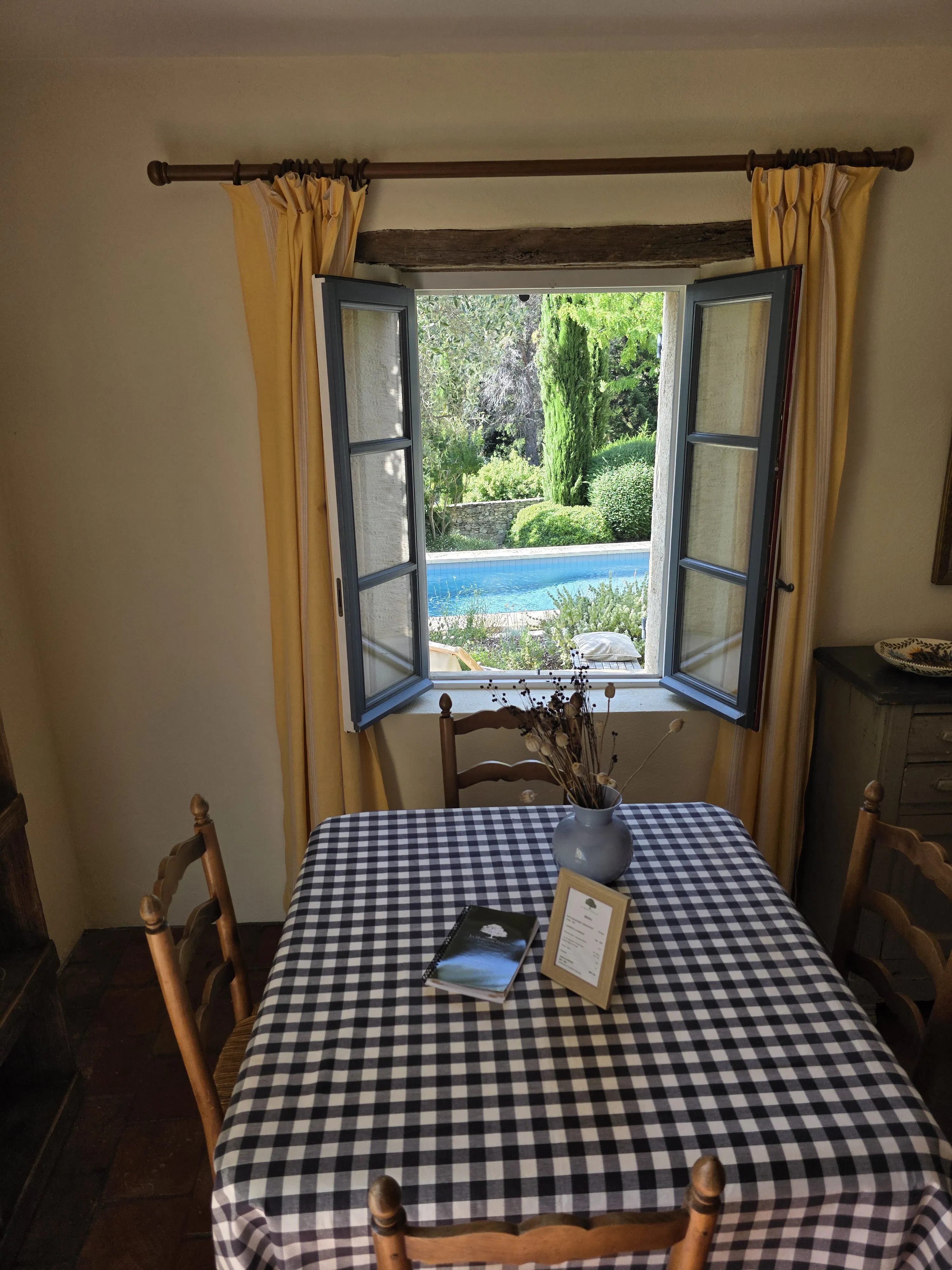 The Cypress Cottage offers beautiful views onto our landscaped pool the valley and mountains. It has a private terrace with an outdoor table and chairs as well as its own BBQ. On the ground floor, you will find a lovely French country kitchen with a dining area. The first floor is comprised of the main bedroom with its king size bed, a living room and a spacious bathroom with a shower and toilet.